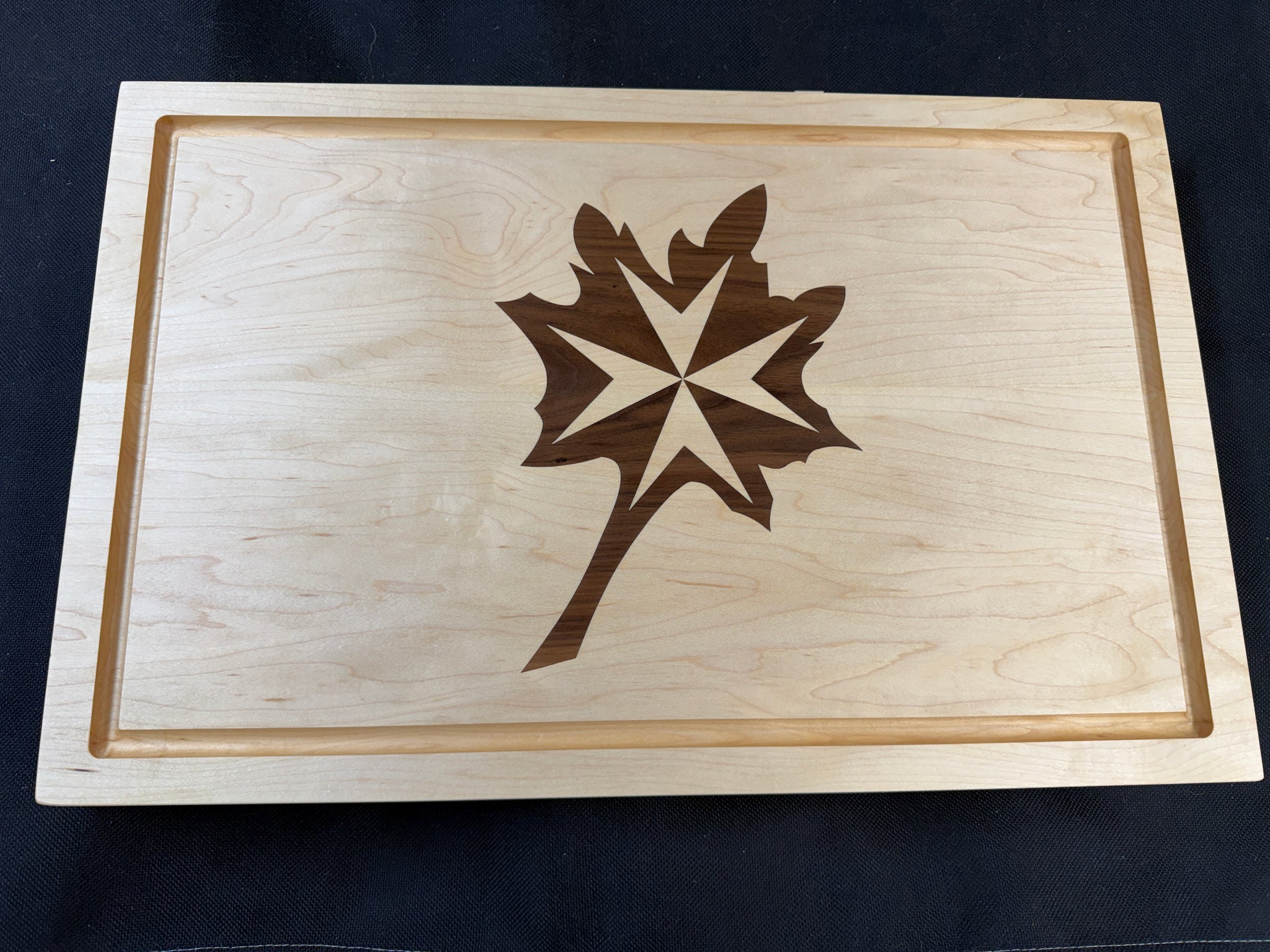 Nos planches à charcuterie/fromage sont conçues sur mesure selon vos envies, pour créer une planche de service unique, durable et aussi belle à vide que garnie de vos produits préférés. Contrairement à certains produits « gravés au laser », nos planches ne présentent aucune cavité où les particules alimentaires s'accumuleraient, ce qui faciliterait le nettoyage et réduirait leur durabilité. Elles sont plutôt fabriquées avec des incrustations de bois contrastant (ici, du noyer sur de l'érable), puis usinées pour obtenir une surface parfaitement plane et uniforme. Enfin, elles sont soigneusement huilées avec un mélange d'huile minérale et de cire d'abeille de qualité alimentaire pour une beauté durable. Elles sont livrées avec un produit d'entretien et un mode d'emploi. Les prix varient selon la taille ; contactez-nous pour discuter de la vôtre ! kokuskraftworks@gmail.com
