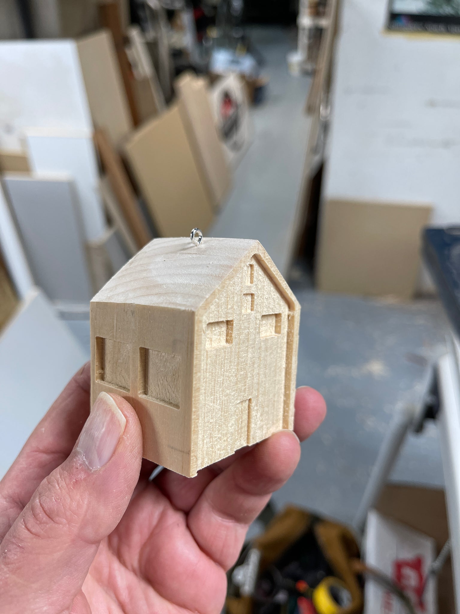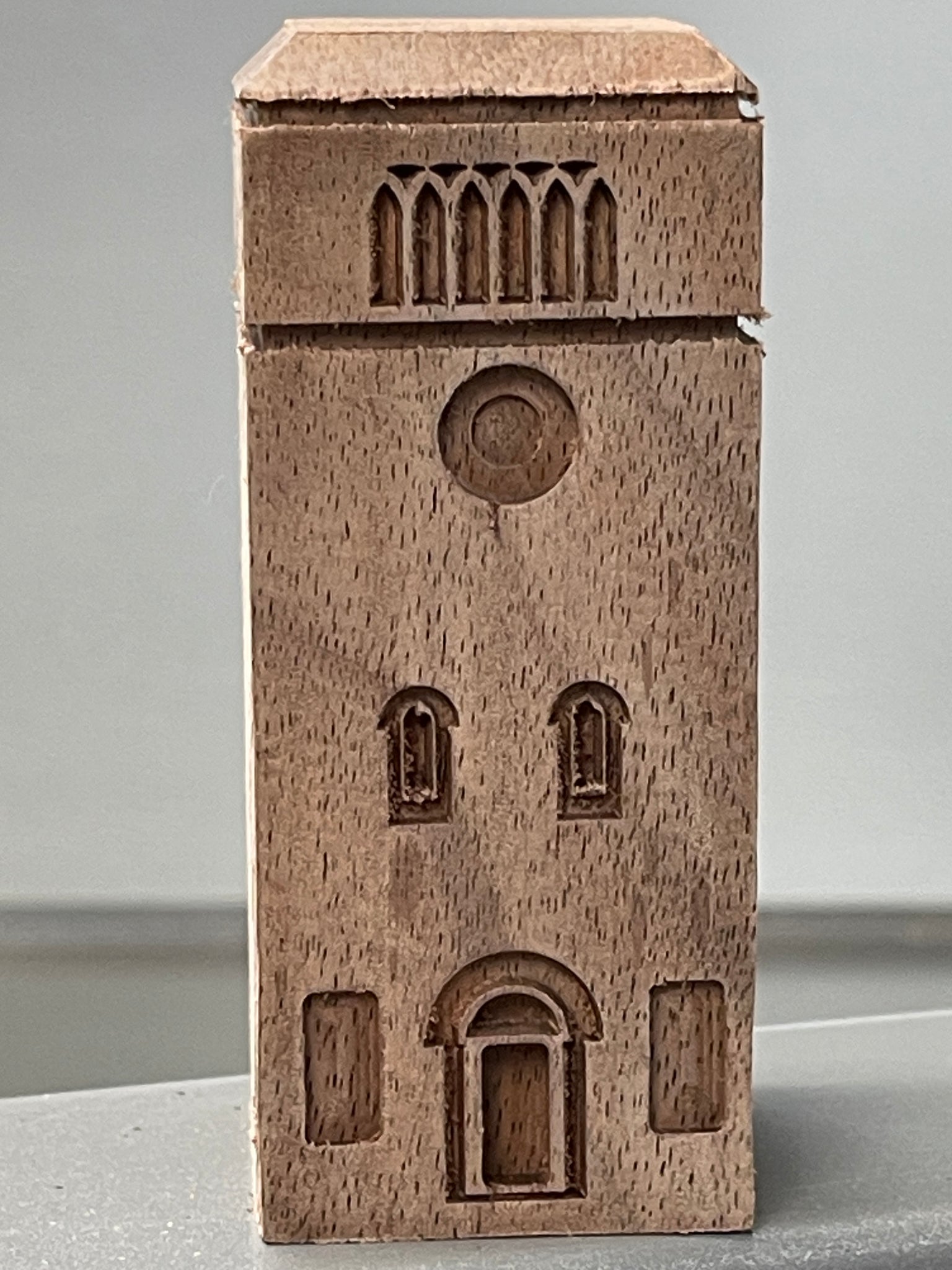 The solid Hardwood tree ornaments are carved in intricate detail from a single solid piece of wood, either Cherry or Maple. The St Nicholas (round ornament) measures about 4-1/4" round, the rectangular Santa at the chimney measures about 3-1/2" X 5" and the freestanding Santa in 4" tall. All come with an installed eyelets, are finished with several coats of spray lacquer and are ready to adorn your tree!